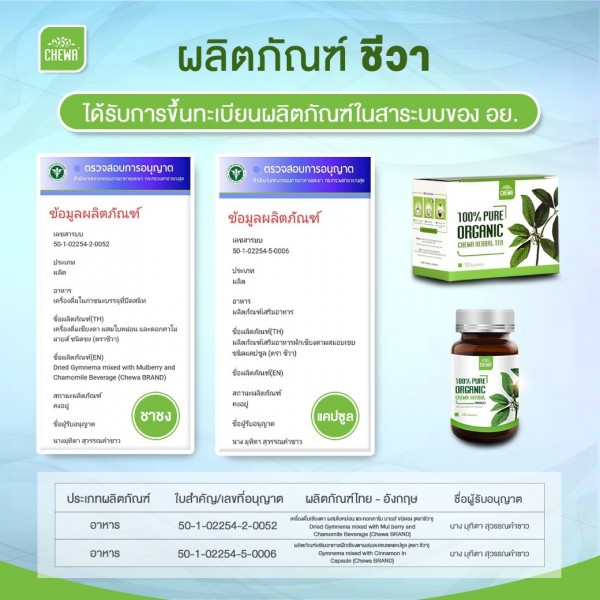 ชีวาเป็นอาหารเสริมจากสมุนไพรพื้นบ้านที่มีคุณสมบัติในการลดน้ำตาลในเลือดอย่างผักเชียงดา โดยใช้วิธีการปลูกแบบเกษตร์อินทรีย์ ทำให้ปลอดภัย ไร้สารเคมี และยังมีทีมวิจัยที่พัฒนาสายพันธ์ุพิเศษเพื่อนำมาทำเป็นยาโดยเฉพาะ มั่นใจในคุณภาพด้วยการรับรองมาตรฐานระดับโลกอย่าง USDA และ Euro Organic